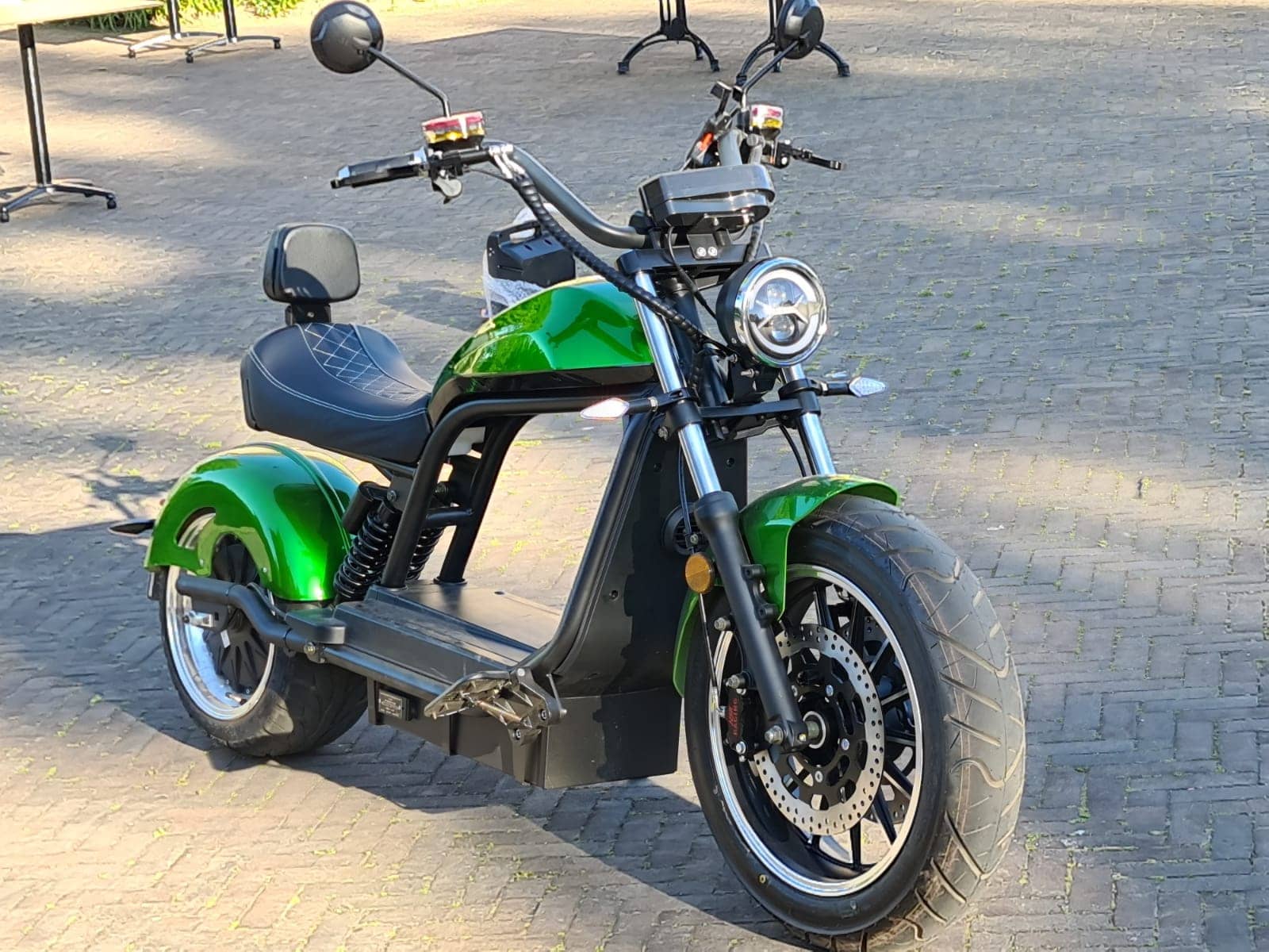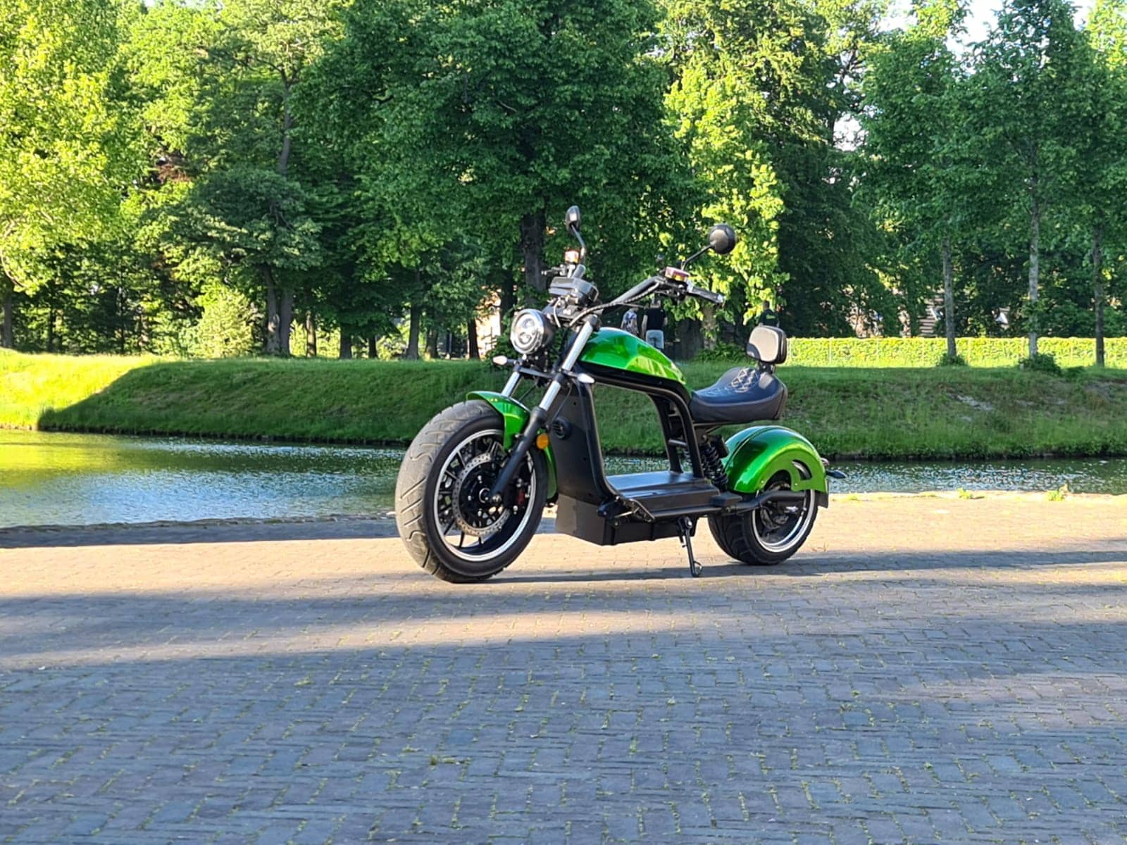 Deze E-chopper heeft het exclusieve uiterlijk van een echte Harley. Lage zit, groot zadel, hoog stuur, dikke banden, lekker stoer. De MR Harley is geschikt voor 1 persoon.